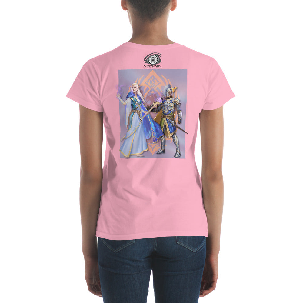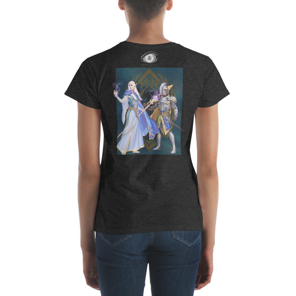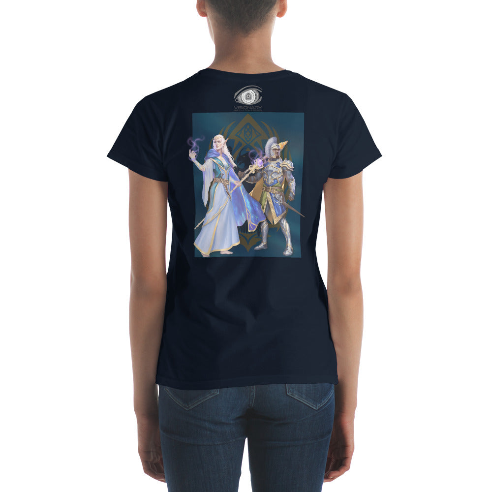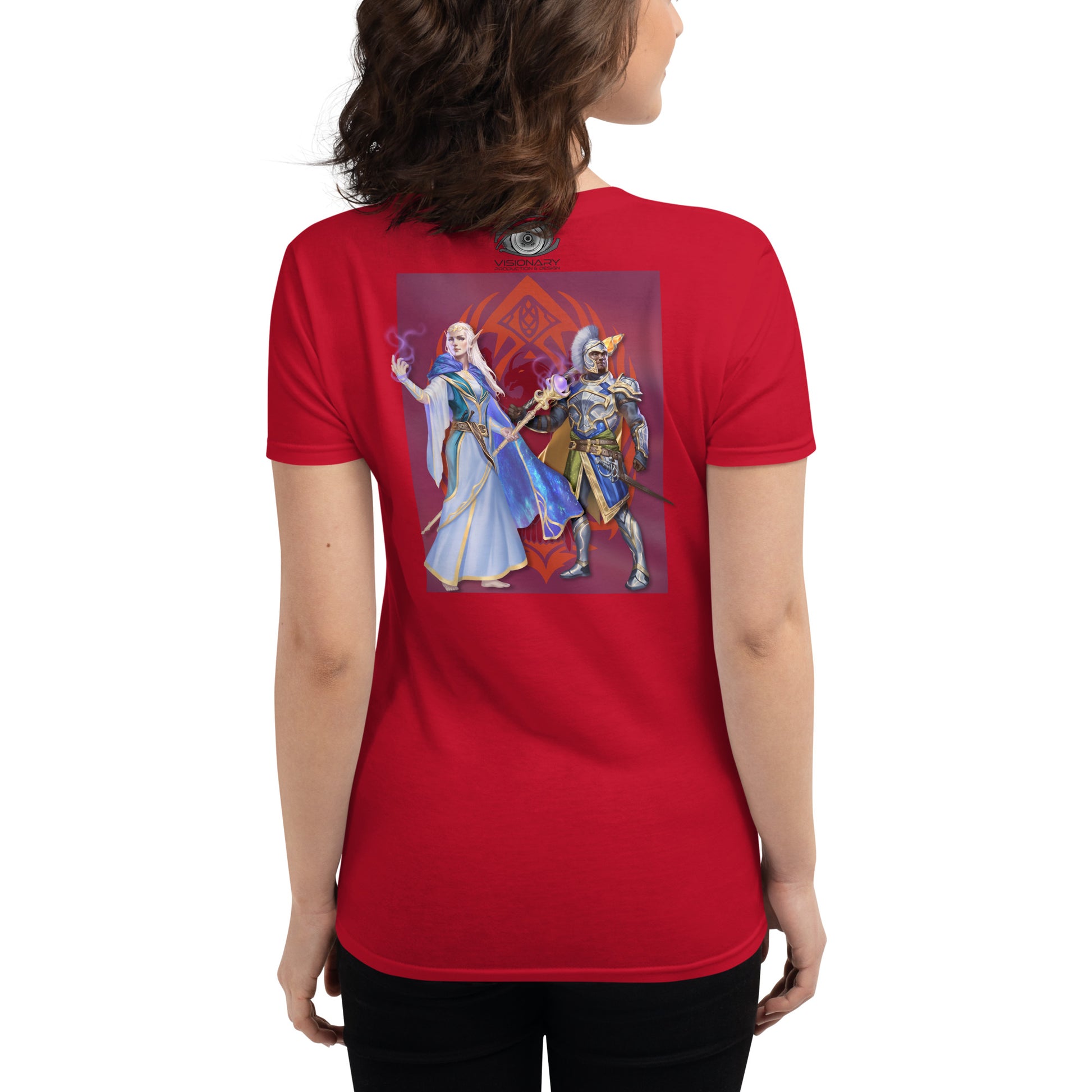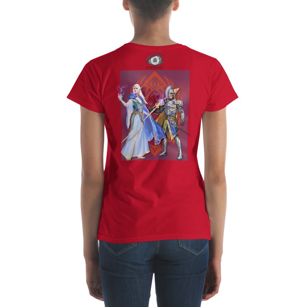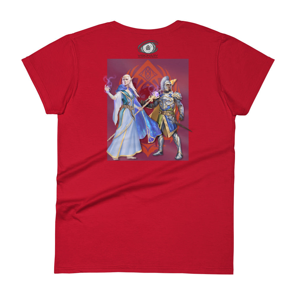 Women's Short Sleeve T-Shirt "Red Wolf” Crest Front/Adventurers Back
