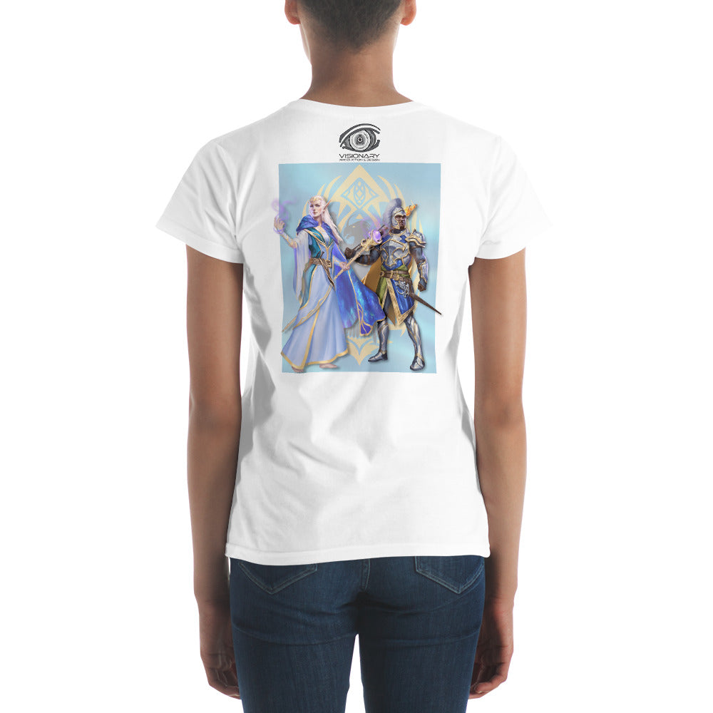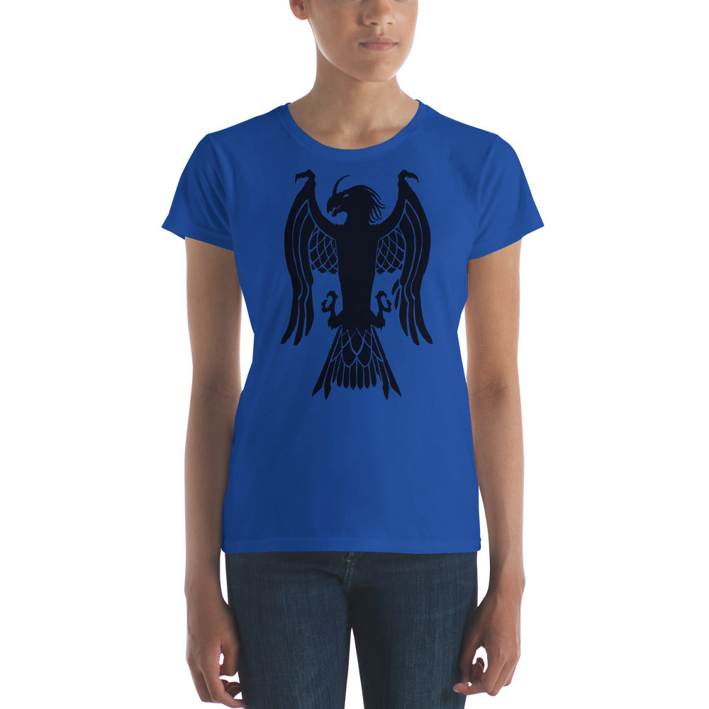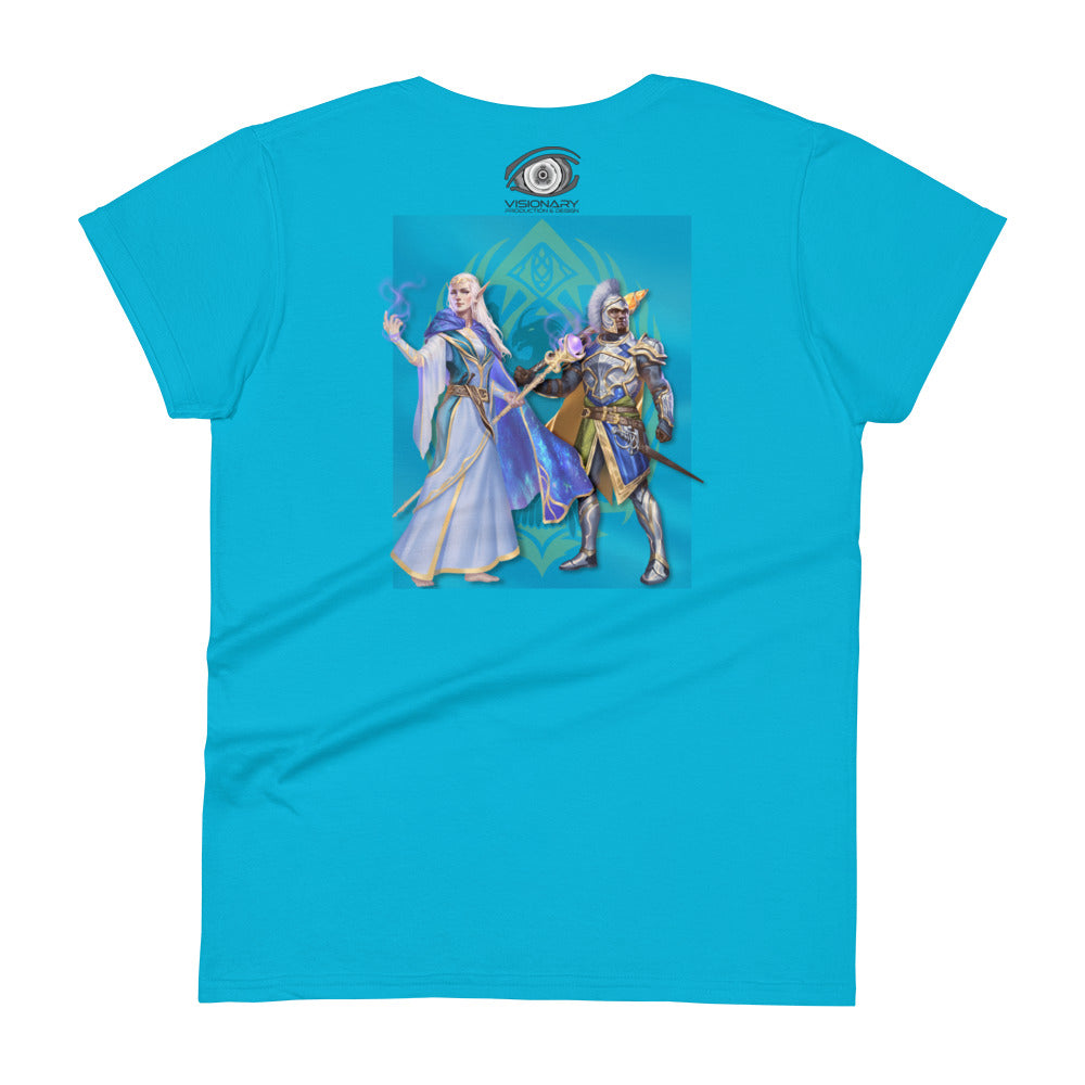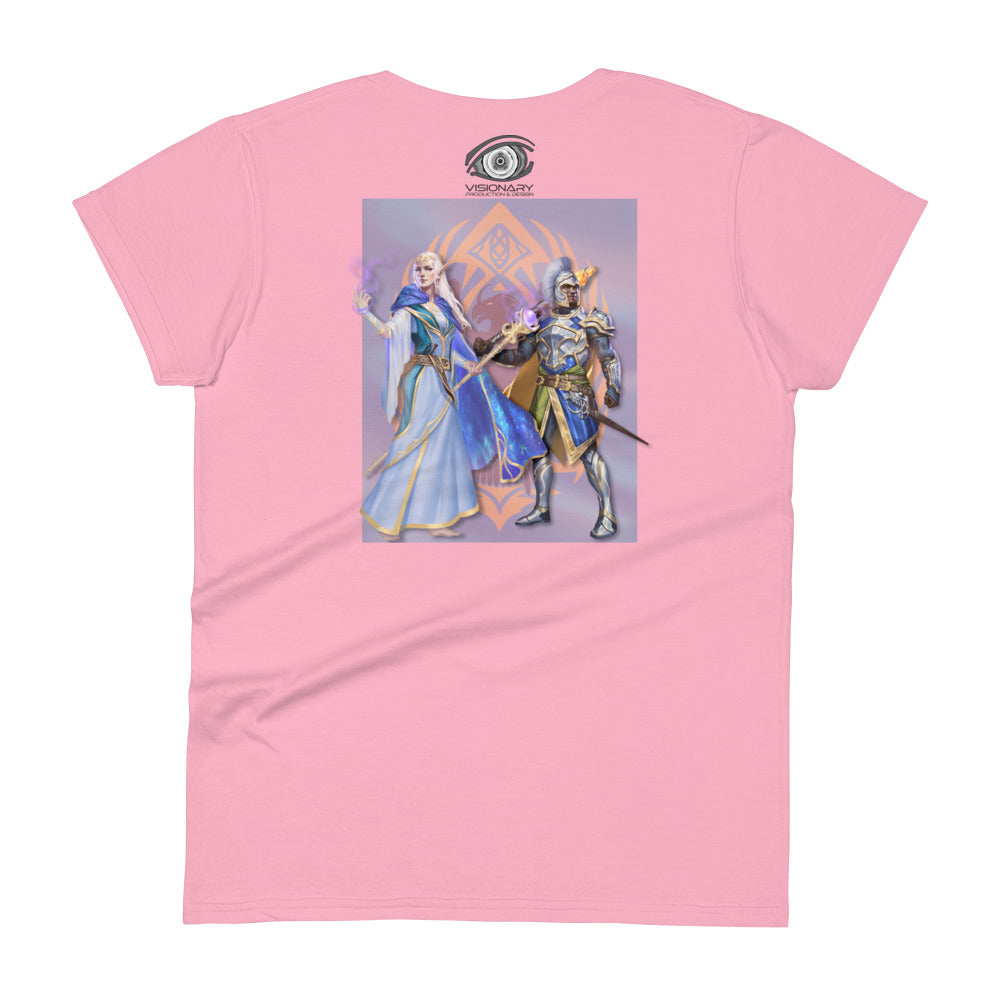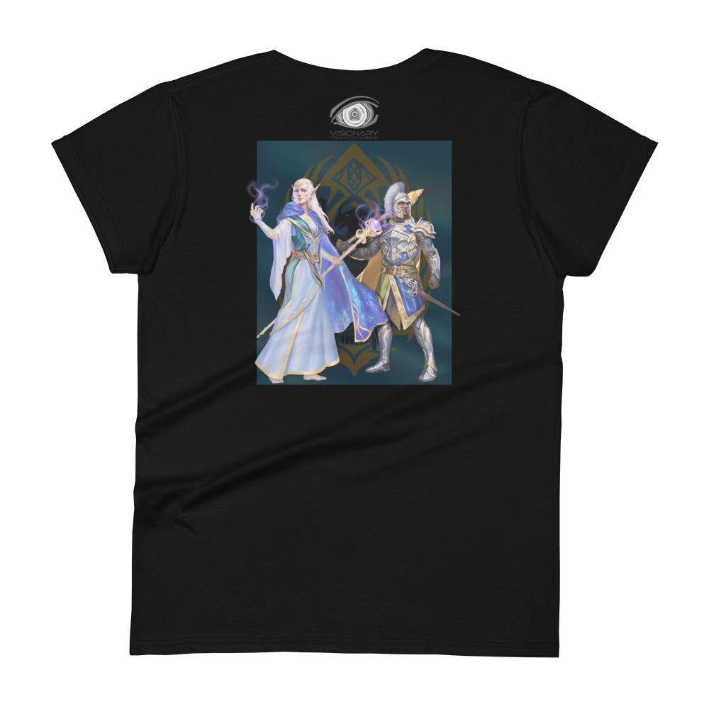 Women's Short Sleeve T-Shirt "Red Wolf” Crest Front/Adventurers Back
