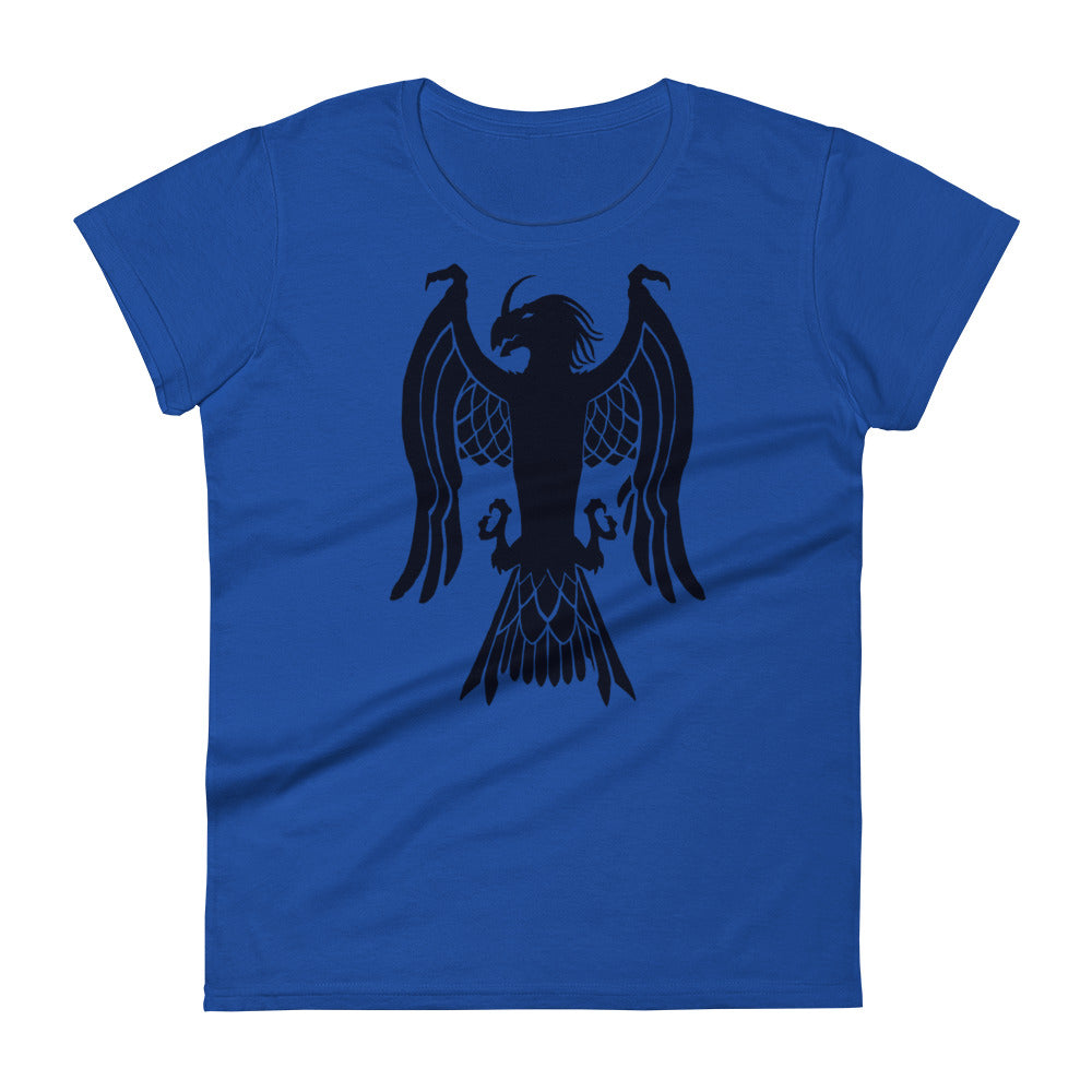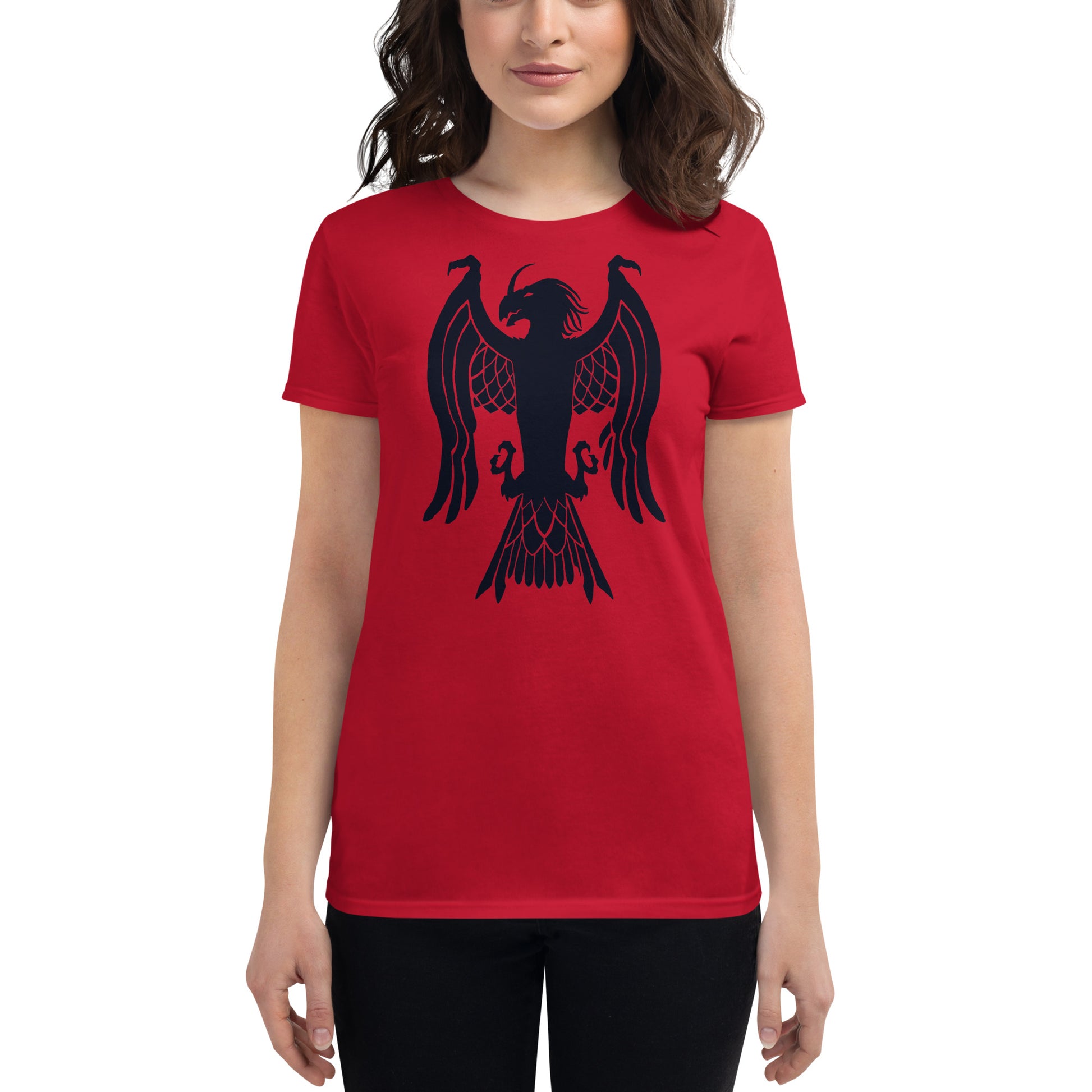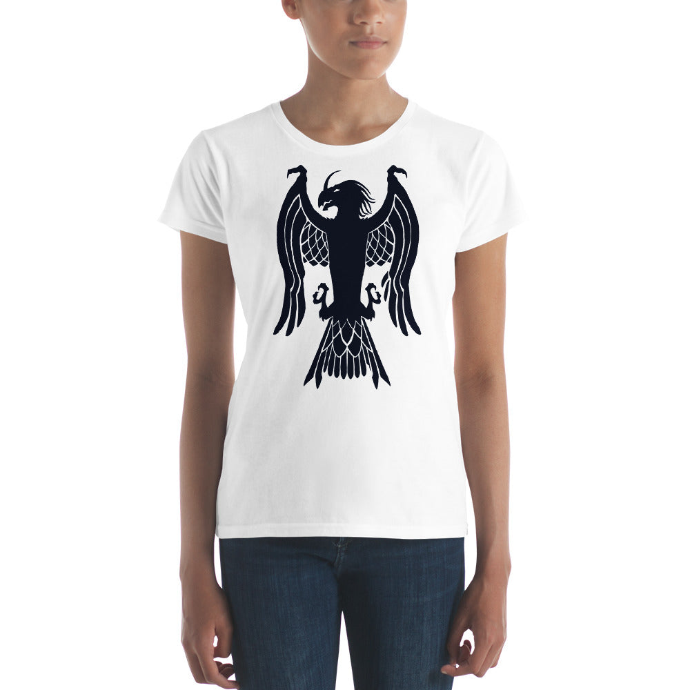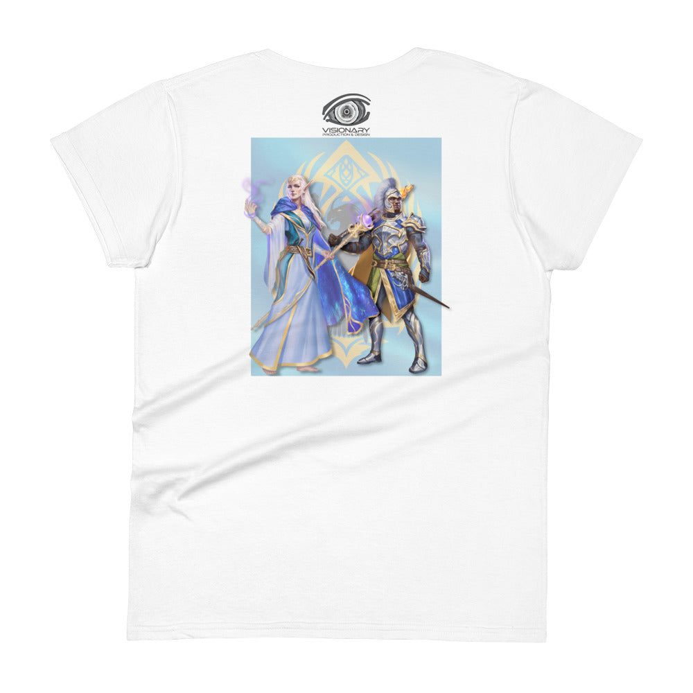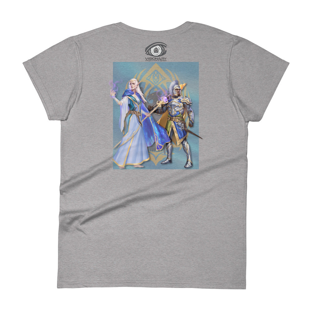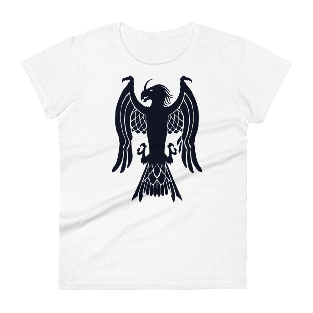 Women's Short Sleeve T-Shirt "Red Wolf” Crest Front/Adventurers Back
