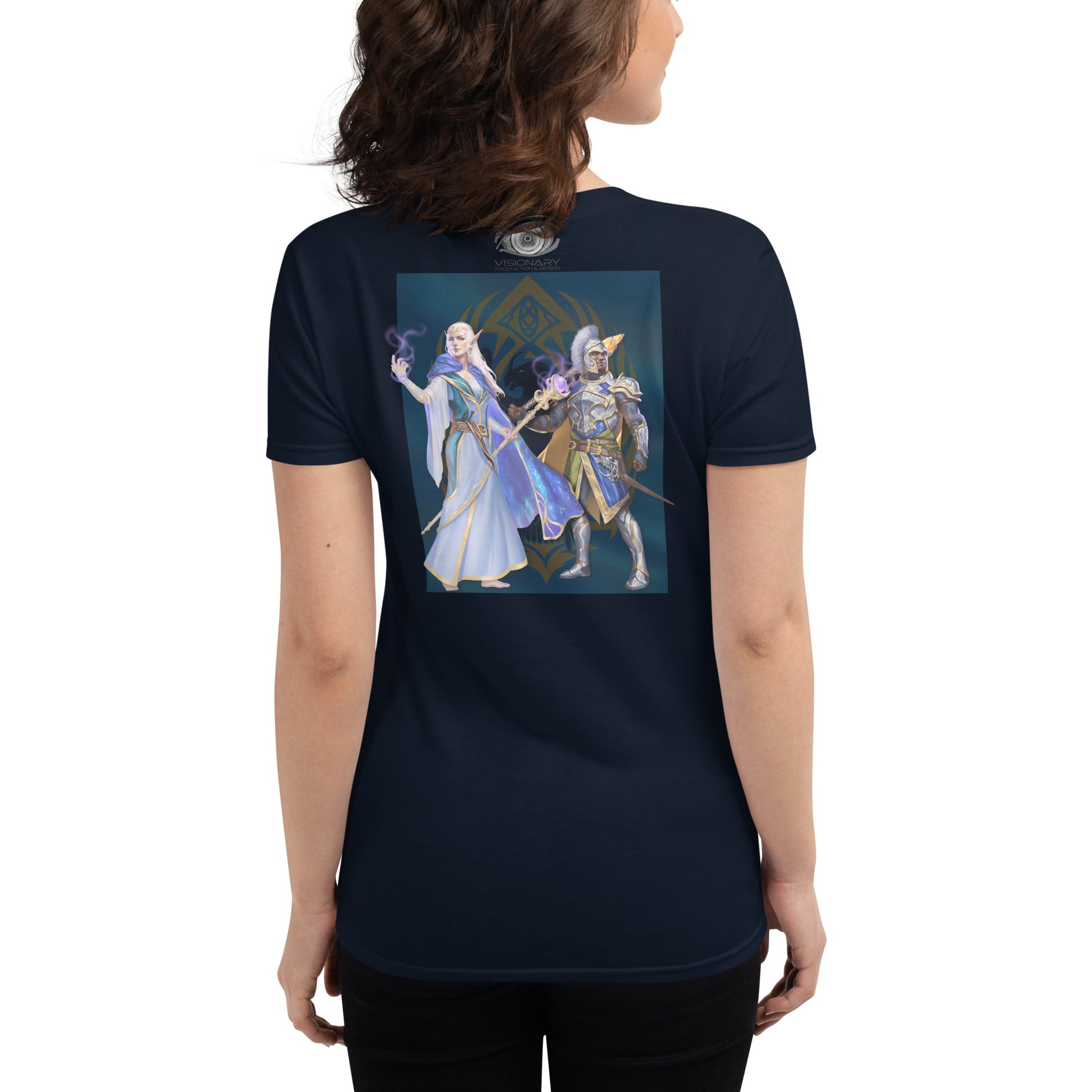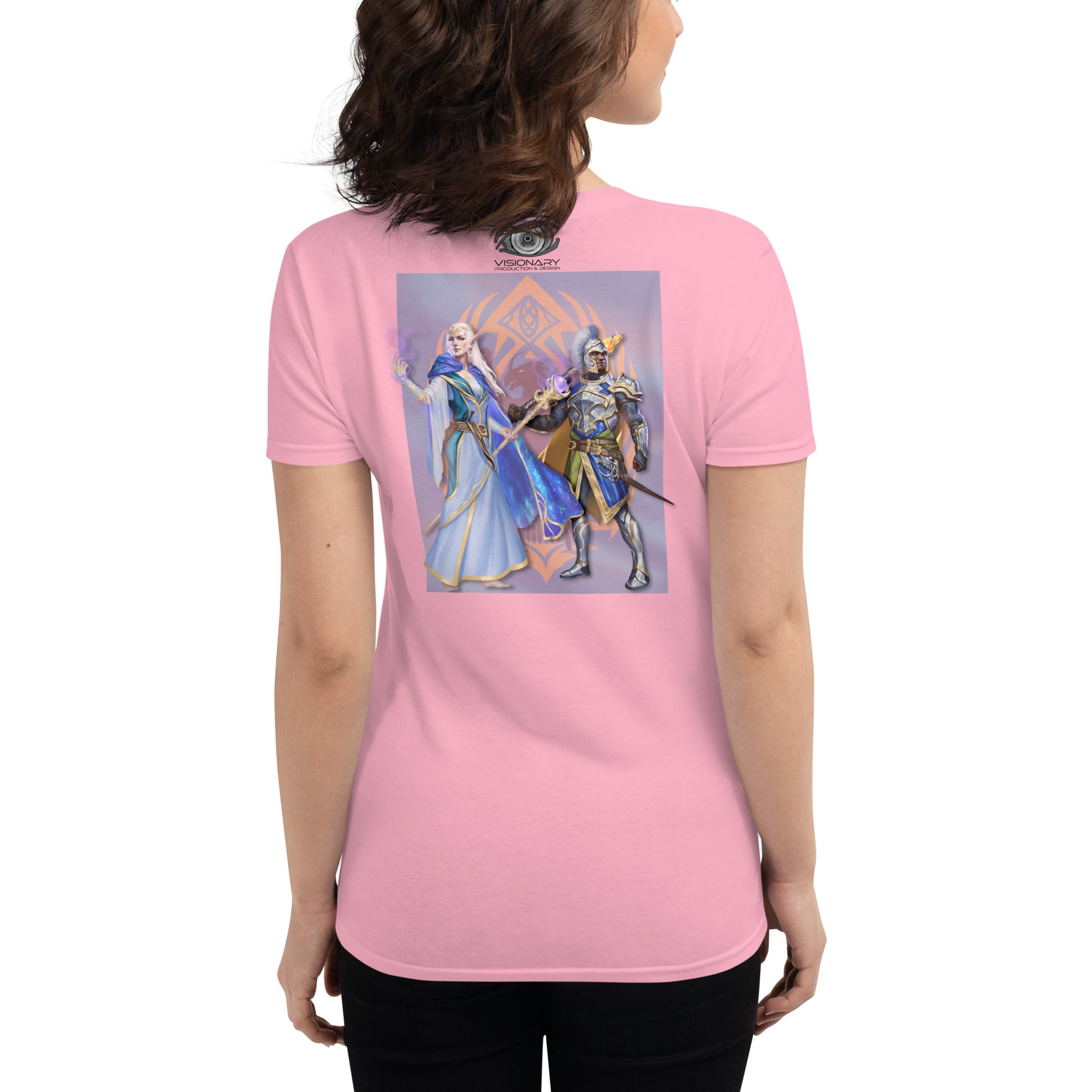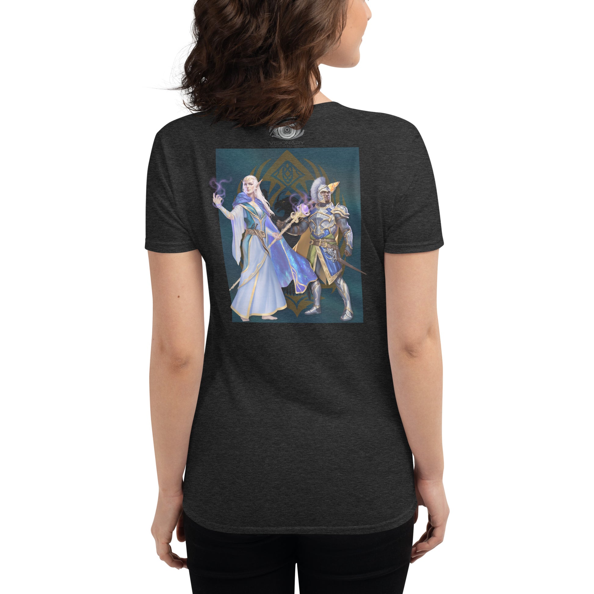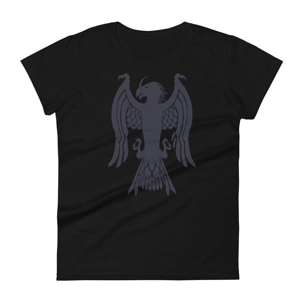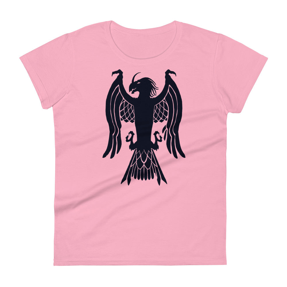 Women's Short Sleeve T-Shirt "Red Wolf” Crest Front/Adventurers Back