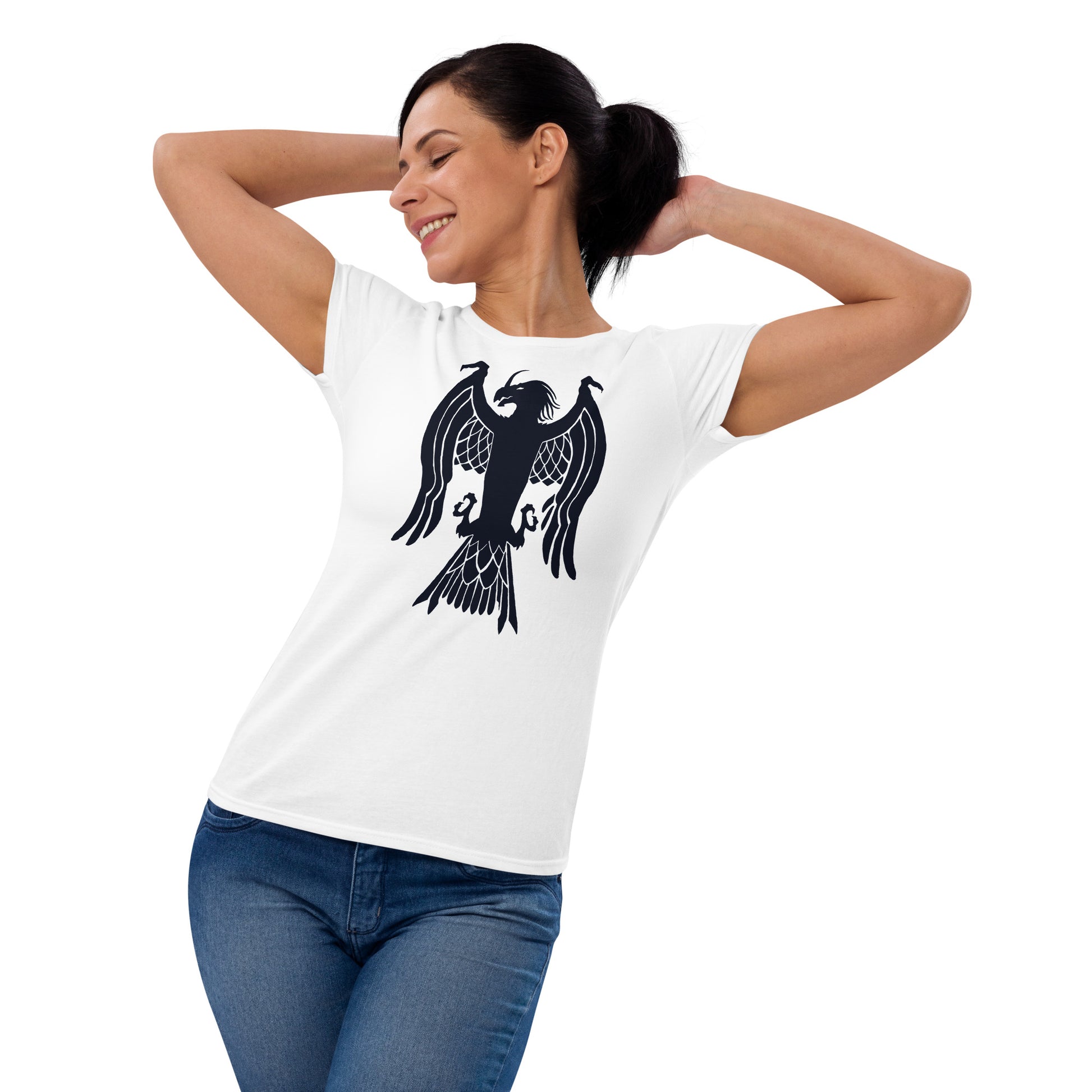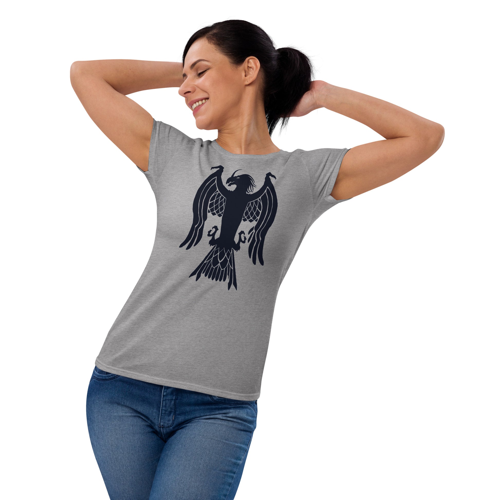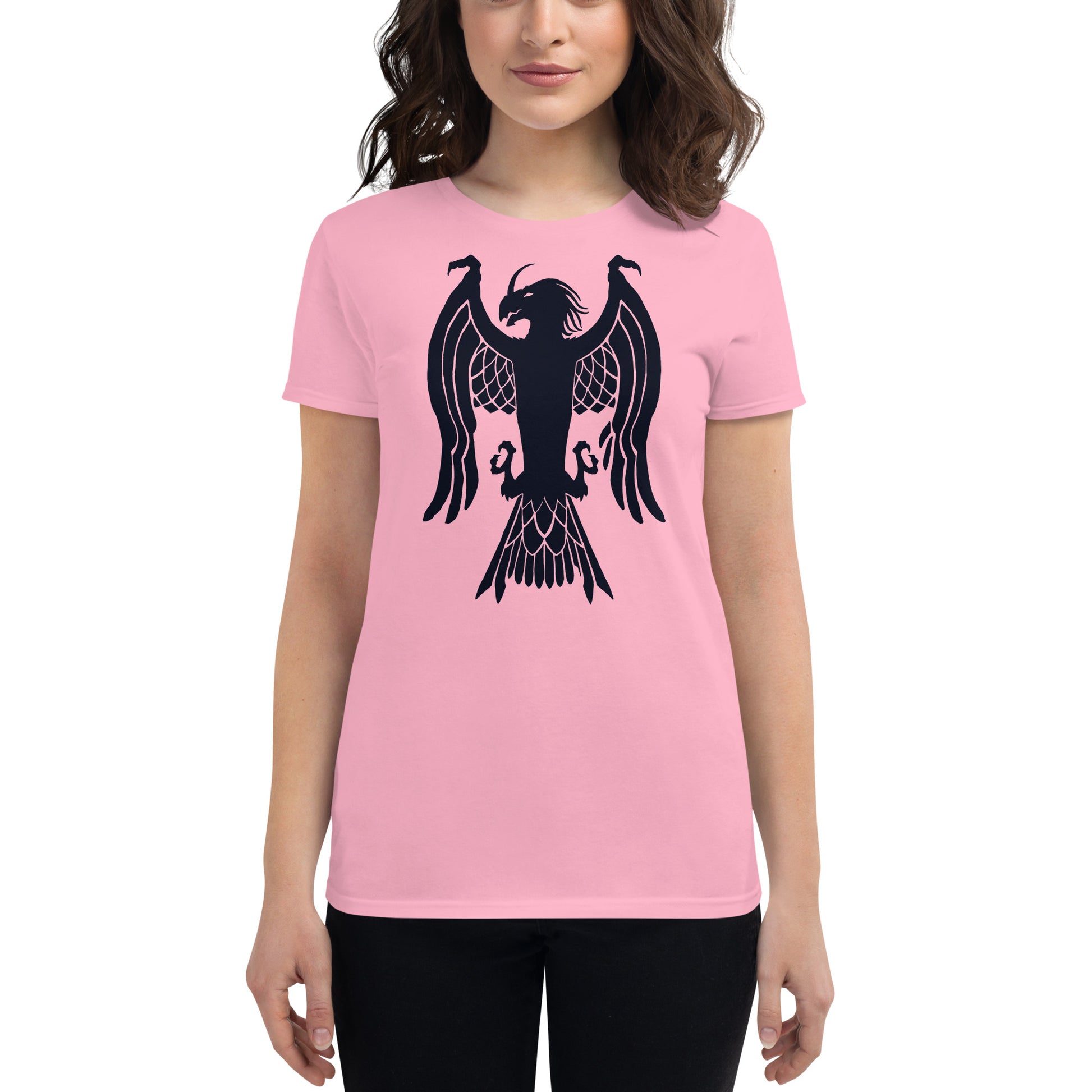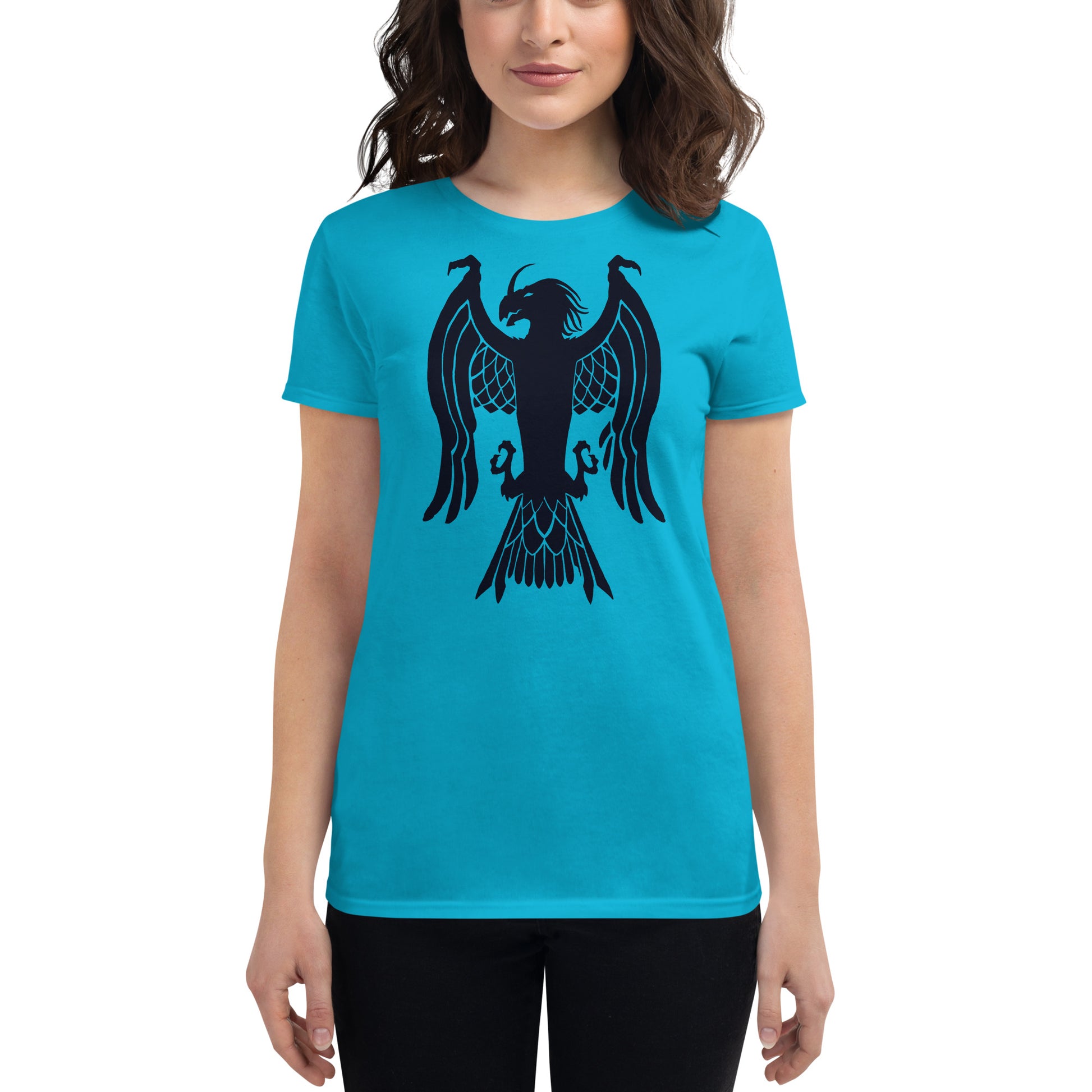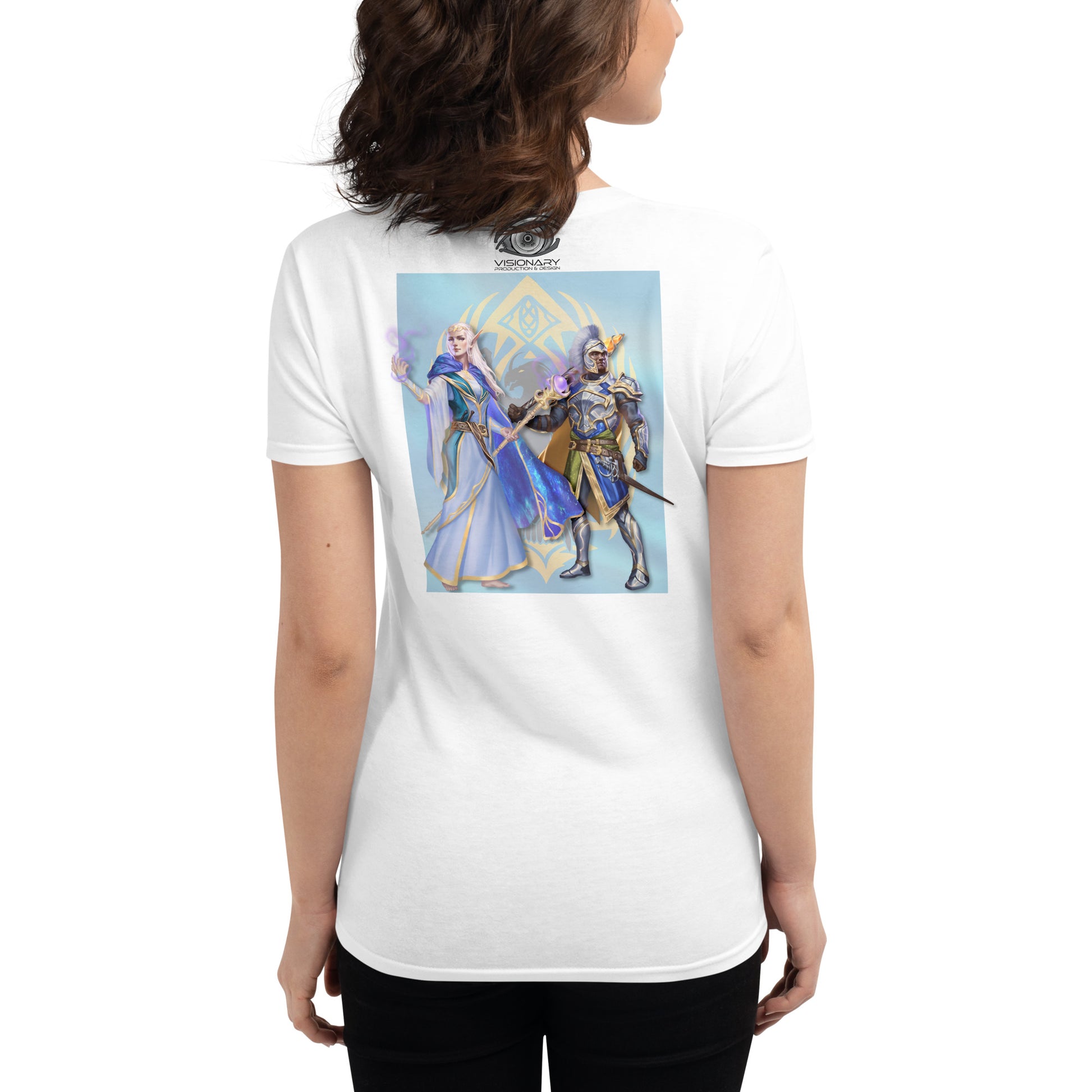 Women's Short Sleeve T-Shirt "Red Wolf” Crest Front/Adventurers Back